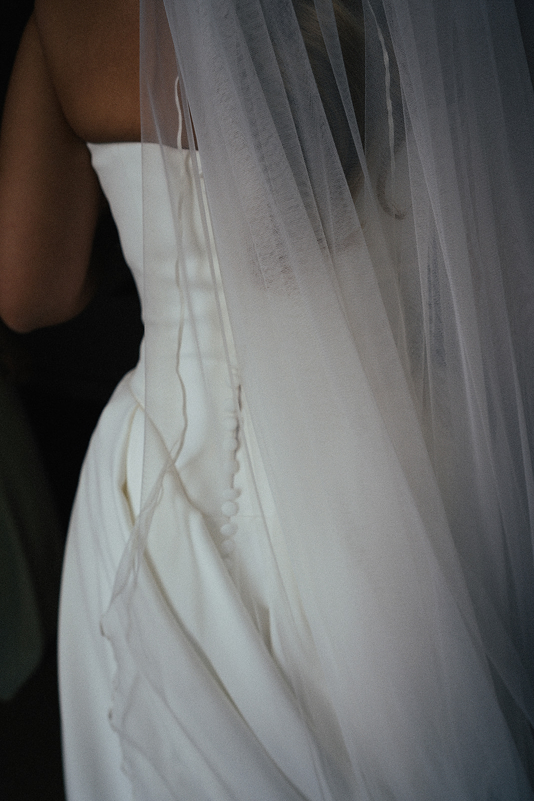 We managed to grab five minutes as the guests were going to find their seats to capture some quick portraits in front of the venue's iconic Gin & Juice sign—a lovely, on-the-fly portrait spot! My 90/10 approach was in full swing: 90% unposed, real-time observation, giving Tara and Sam the space to simply be present and feel every moment, rather than perform for the camera.
