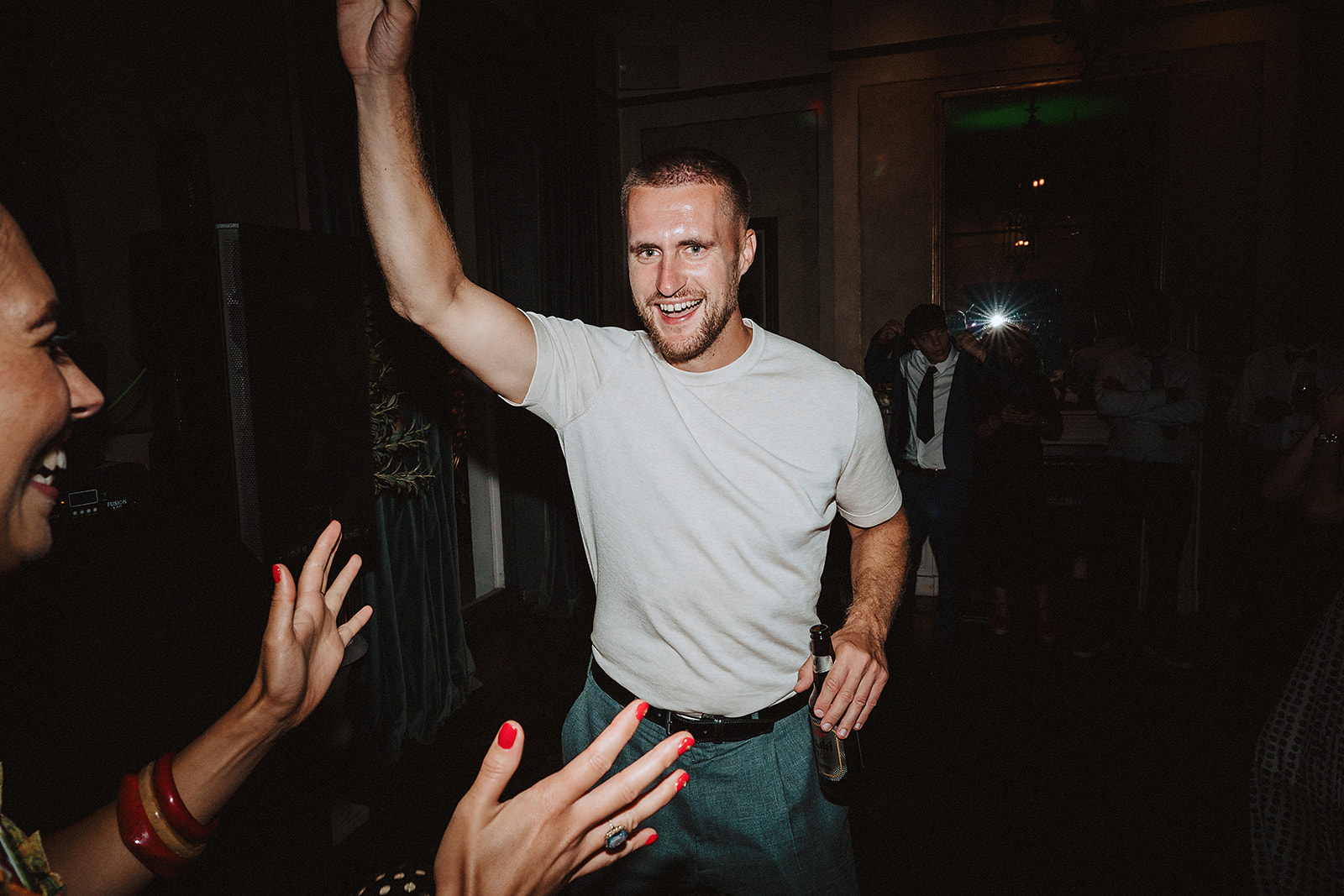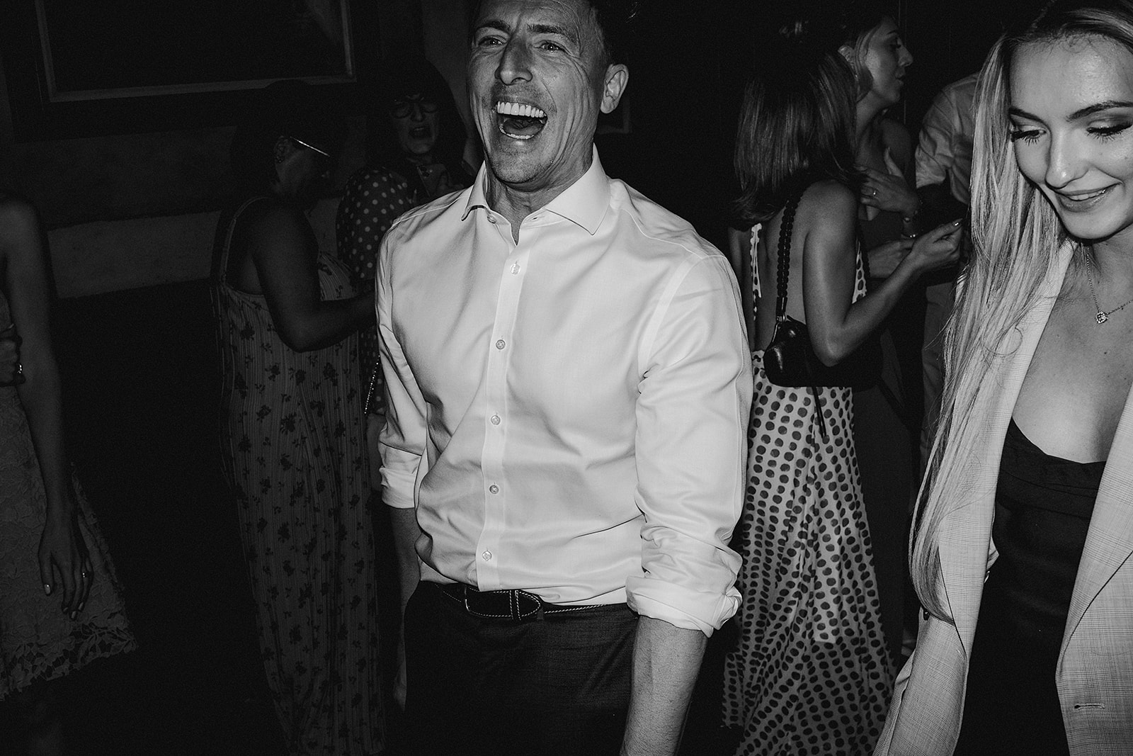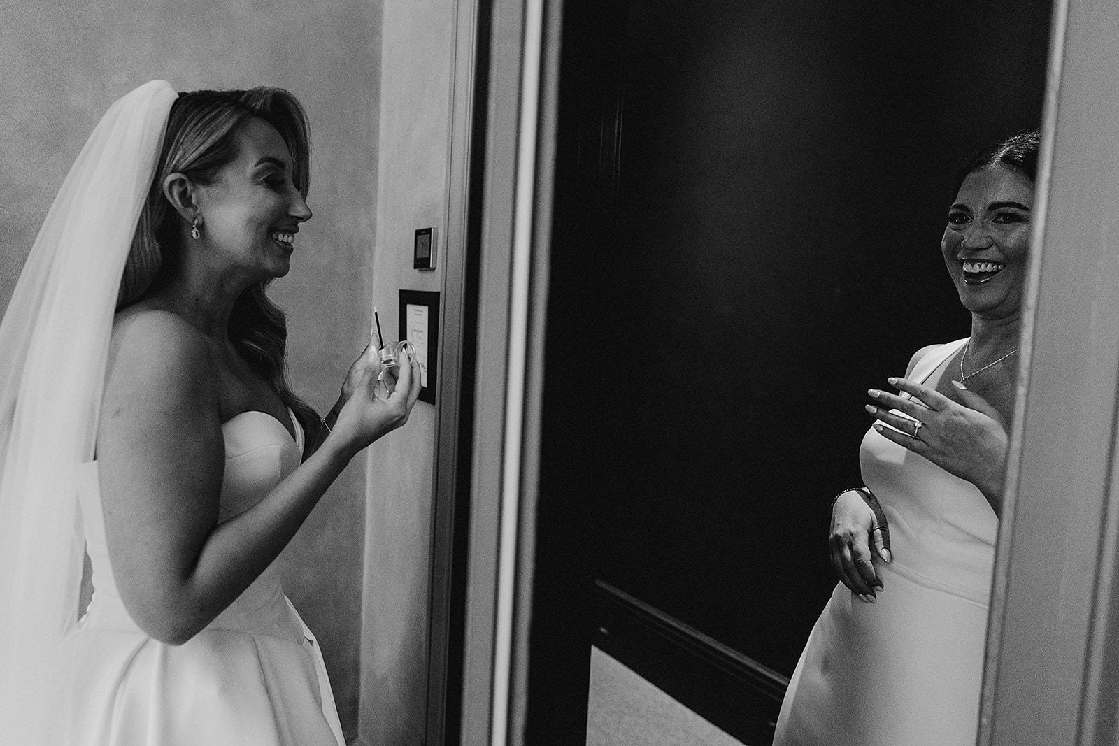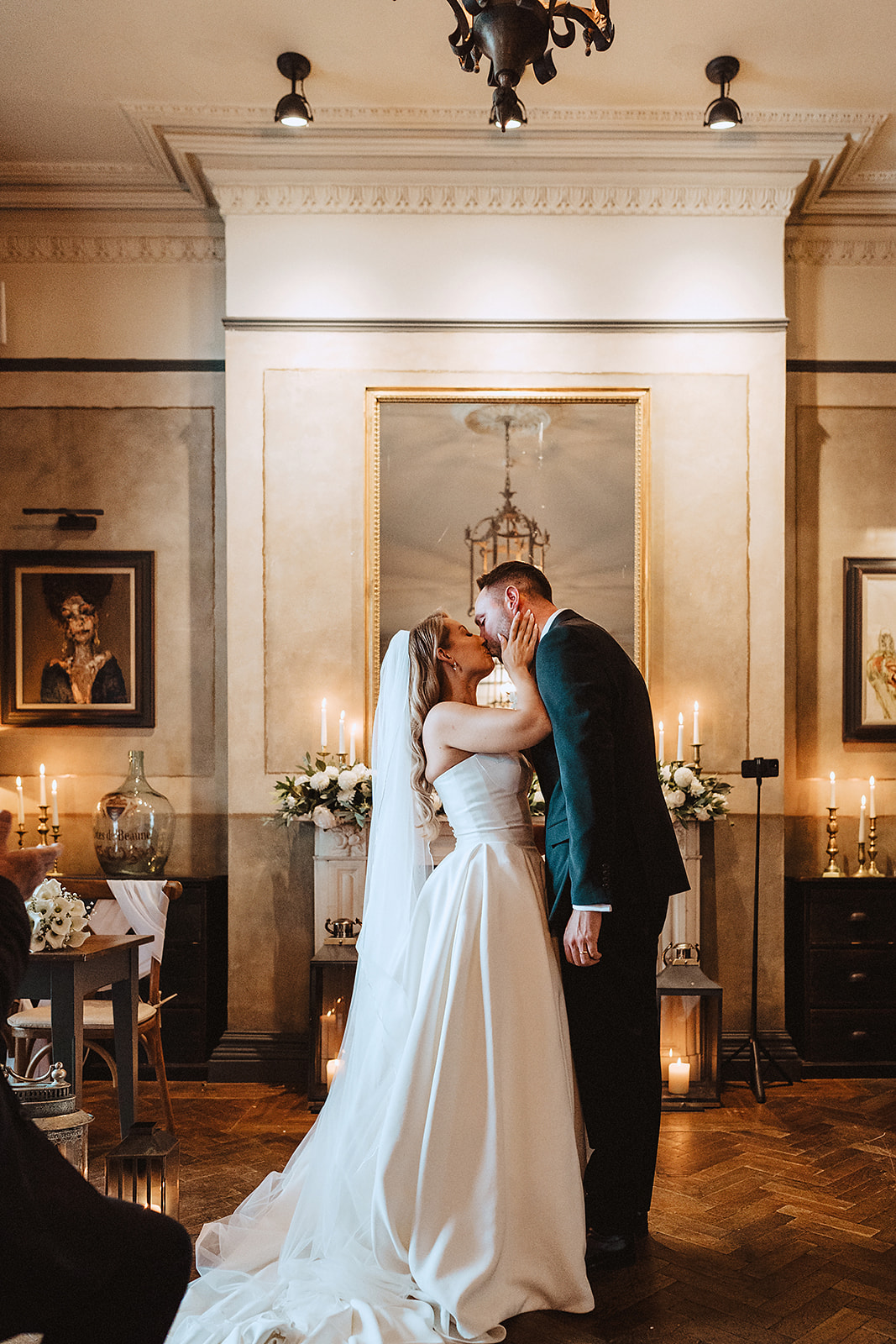 We managed to grab five minutes as the guests were going to find their seats to capture some quick portraits in front of the venue’s iconic Gin & Juice sign—a lovely, on-the-fly portrait spot! My 90/10 approach was in full swing: 90% unposed, real-time observation, giving Tara and Sam the space to simply be present and feel every moment, rather than perform for the camera.