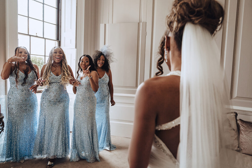 Candid Shropshire wedding photography of bride and bridesmaids