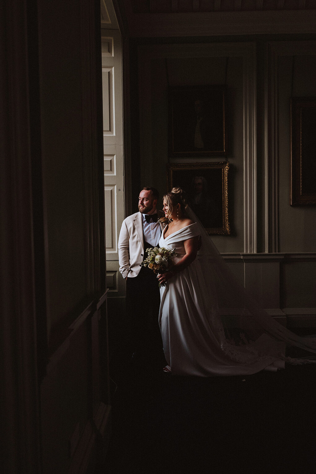 Portrait of bride and groom in the parlour at Davenport House