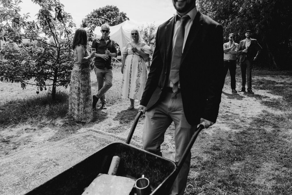 Forget the typical wedding spots; Poppy and Dave chose somewhere truly, profoundly personal for their big day: the incredible land that’s part of Poppy’s family home. This beautiful, cherished place had been hers since birth, literally growing up alongside the trees that would become the woods her parents planted over 30 years ago. It was the only spot that felt right for their ceremony. The property was named after Poppy’s brother, Alex, who sadly died six years ago and rested peacefully at the top of the orchard, making it an even more sacred space. Dave also spent nine months of lockdown here, immersing himself in the rhythm of the land – caring for chickens, baking pizzas, and running in the hills. For them, this wasn’t just a venue; it was a living, breathing part of their love story, packed with shared moments and profound meaning for them both. It was exactly the kind of authentic setting perfect for Shropshire Wedding Photography that set my heart a-flutter.