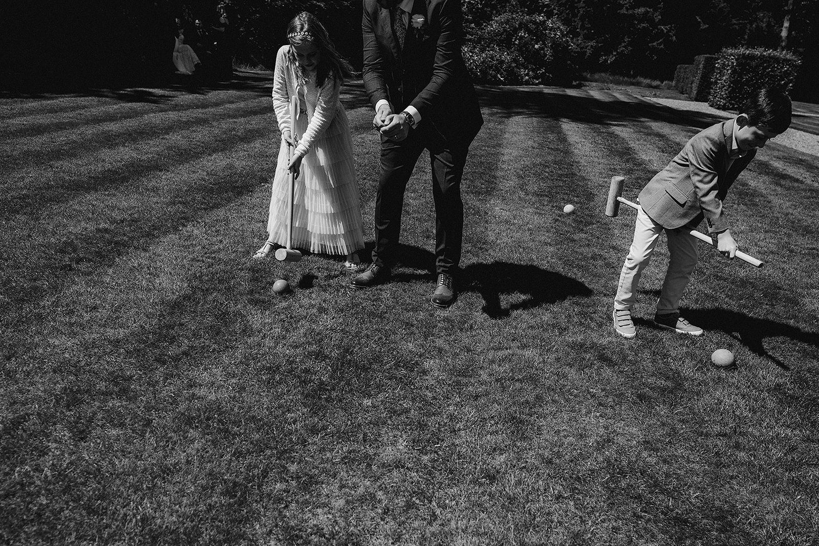 Black and White image of of guests playing croquet on the lawn at Iscoyd Park