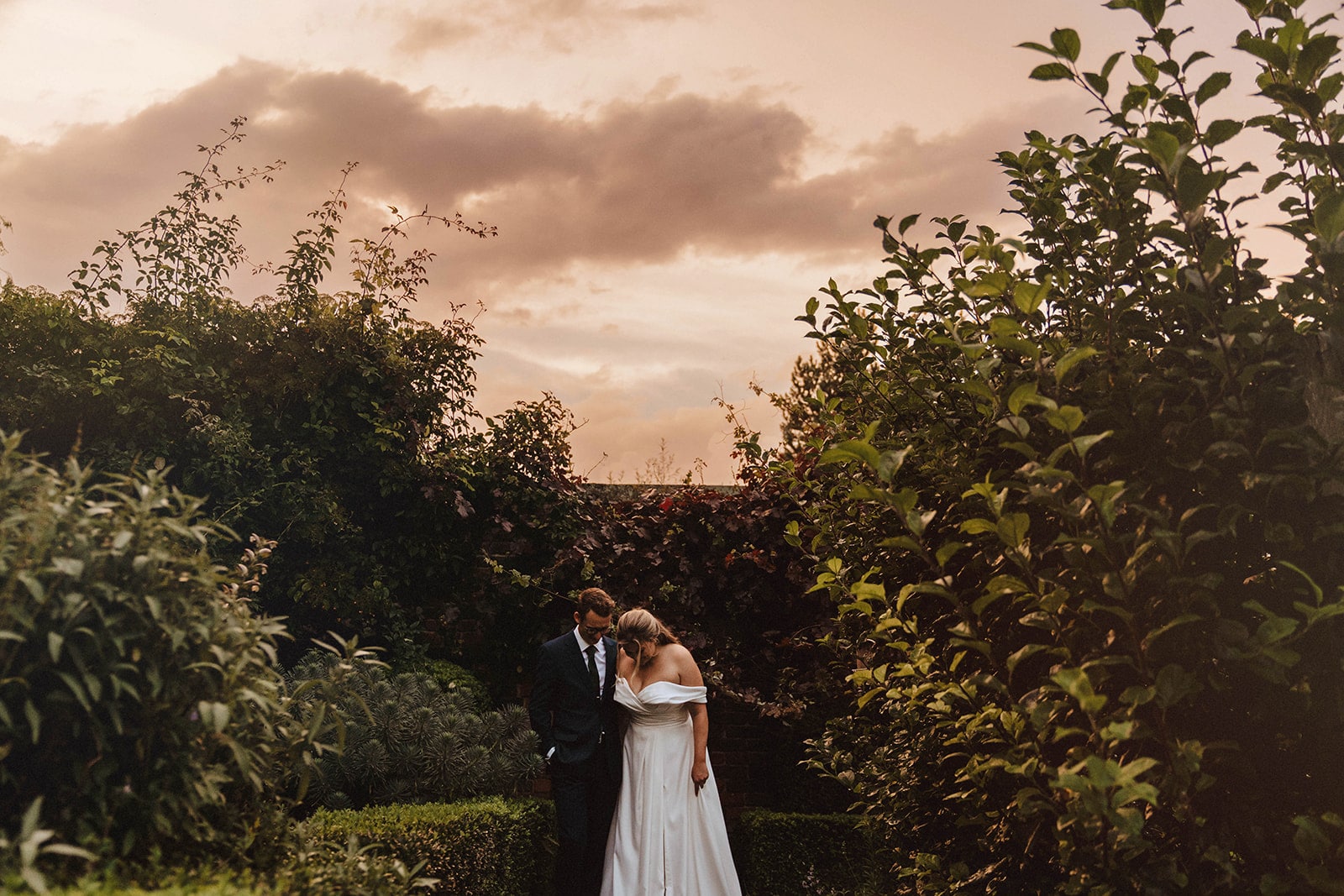 Golden hour photos of Bride and groom strolling through the grounds of Pimhill barn at Pimhill barn wedding